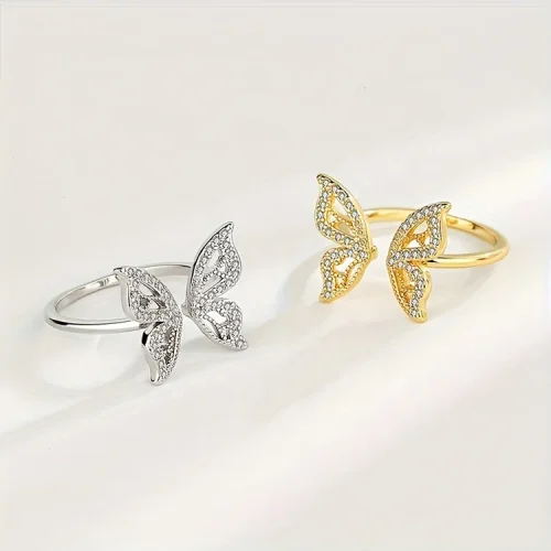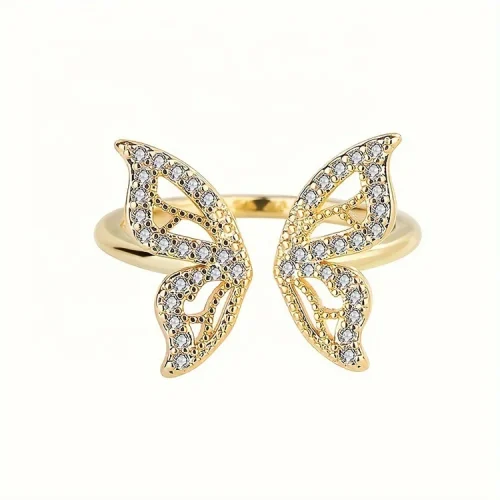 New Arrival Micro Cubic Zirconia Butterfly Opening Rings Gold Plated Shining Fashion Jewelry for Women Trendy Parties