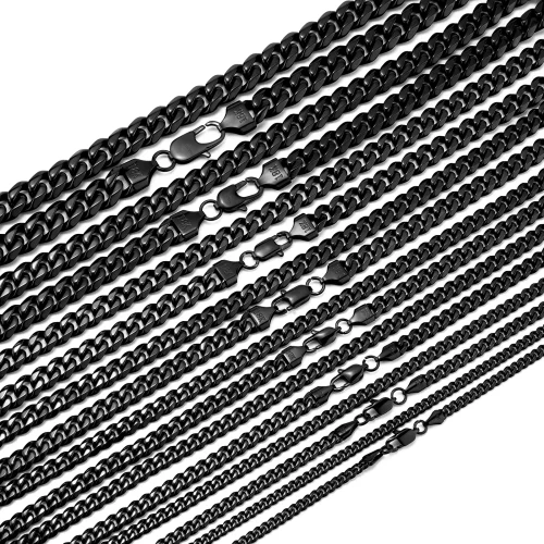 Men’s Stainless Steel Black Plated Necklace Hip-hop Miami Cuban Cutting Flat Fashion Jewelry Fine Necklaces