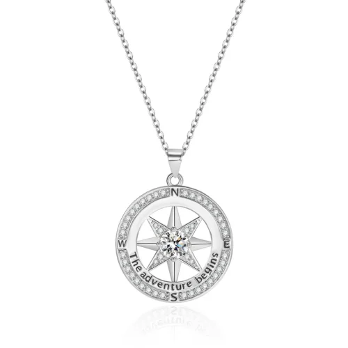 New Design Letter Neck Jewelry 925 Sterling Silver Initial Octagon Exquisite Compass Pendant Necklaces for Women Men
