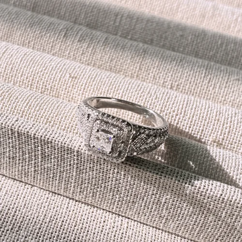 Temperament Couple Engagement Ring Rhodium Plated Square Diamond Zircon Wedding Ring for Women Men Cluster Bridal Set