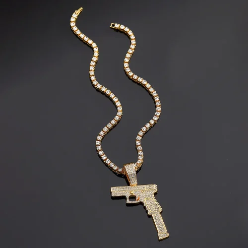 Statement Rapper Jewelry Men’s Hip Hop Zinc Alloy Rhinestone Diamond Iced Out Pistol Pendant Fashion Pendants & Charms