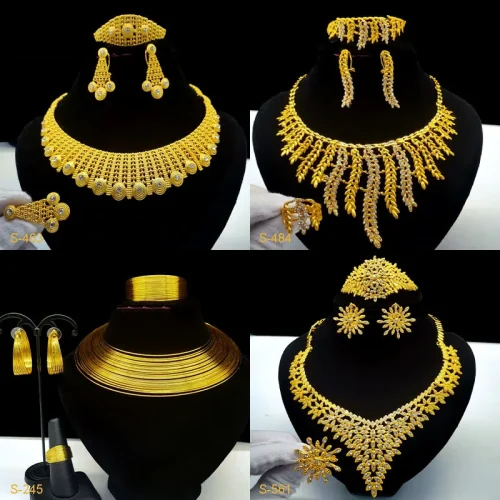 Statement Dubai 24k Gold Plated Indian Jewelry Set African Women’s Wedding Bridal Necklace Earrings Bracelet Ring