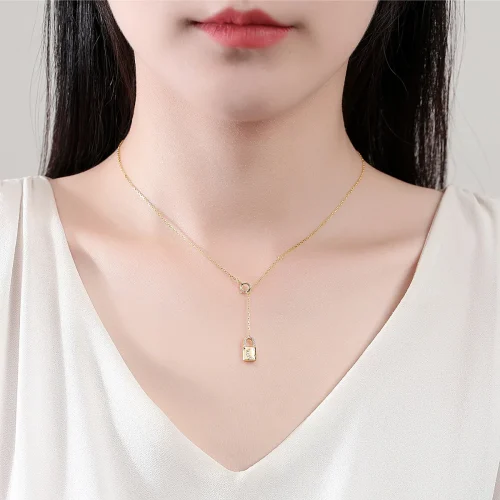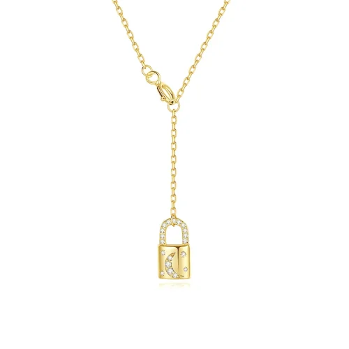 Sterling Silver S925 Jewelry Gold Plated Long Tassel Star Moon Charm Lock Pendant Necklace