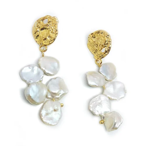 Trendy Gold Plated Stud Earrings for Women Natural Freshwater Baroque Pearl Flower for Party Gift Mainly Copper