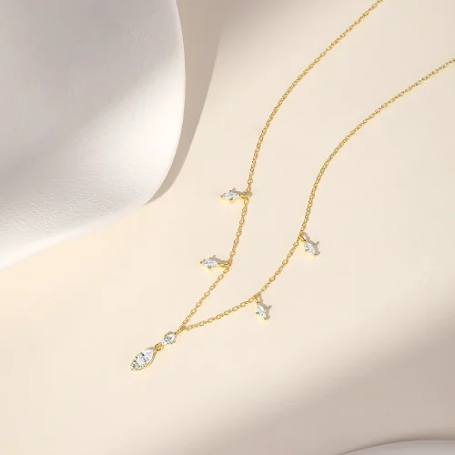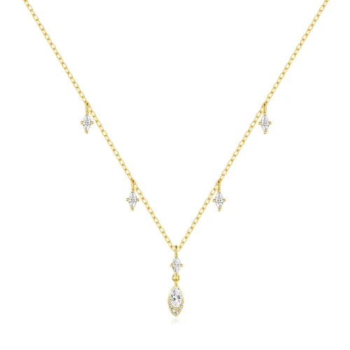 Women Gift 18K Gold Plated Geometry Zircon Fashion Jewelry S925 Silver Necklace Pendant