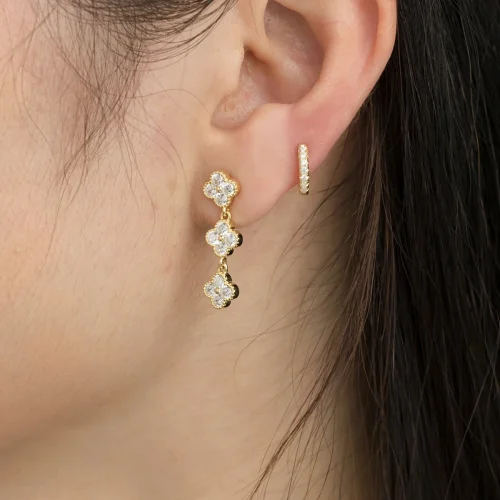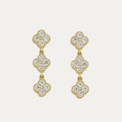 Women Fine Jewelry Sterling Silver 925 Zircon Diamond Four Leaf Clover Lucky Dangle Earrings