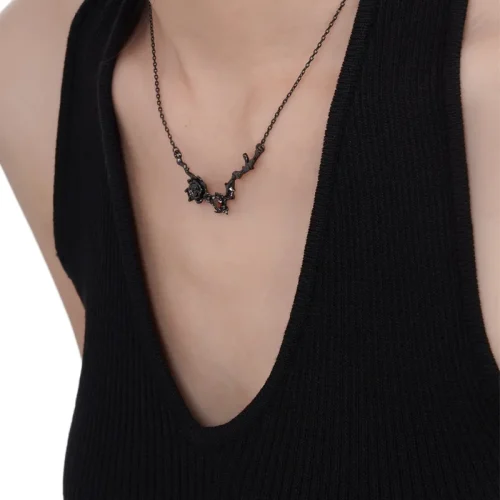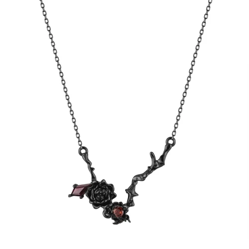 Women Jewelry 925 Sterling Silver Black Rose Necklace Short Ruby Flower Sweater Chain Creative Jewelry