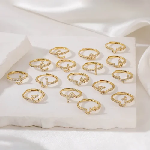 Women Ins Style Arabic Letter Ring Personality Hip Hop Open Adjustable Zircon Letter Rings Copper Jewelry