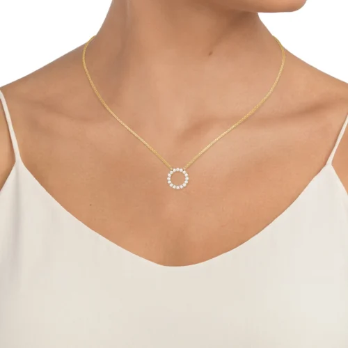 Women Jewelry 925 Sterling Silver Necklace 18K Gold Plated Gold Diamond Circle Pendant Necklace