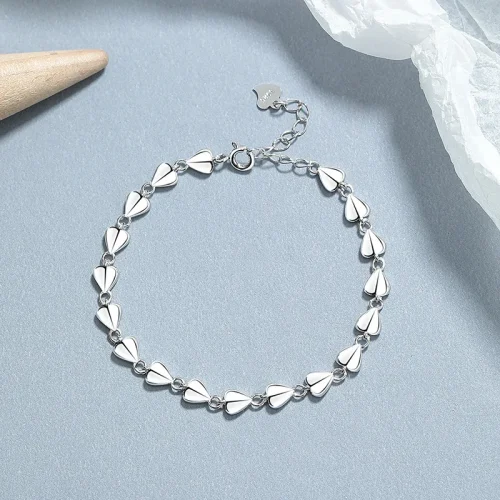Women Fine Jewelry Bracelets 925 Sterling Silver Heart With Heart Beads Beaded Bracelets for Girls Gifts