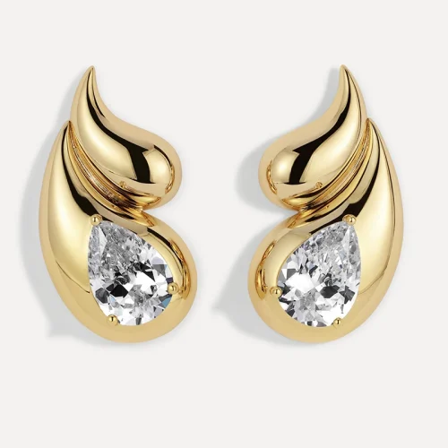 Women Fine Jewelry Sterling Silver 925 Tear Drop Gold Plated Statement Earrings With Pear Zircon