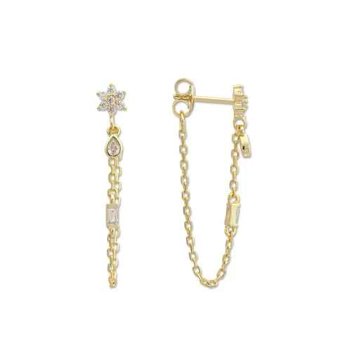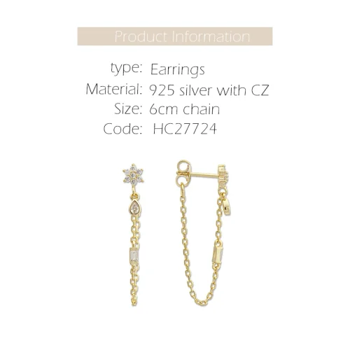 Women Jewelry 925 Sterling Silver With 14K 18K Gold Plated Jewellery Drop Dangle CZ Flower Chain Earring