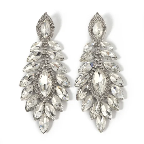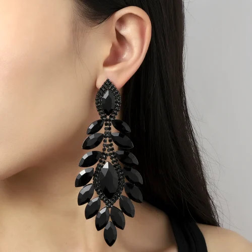 Women Leaf Shaped Shining Earrings Rhinestone Earrings Fashion Crystal Pendant Exaggerated Earrings
