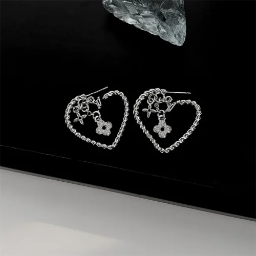 Women Jewelry Drop Earrings Cheap Dangle Silver 925 Heart Shape Earring Letter V Pendant Earrings