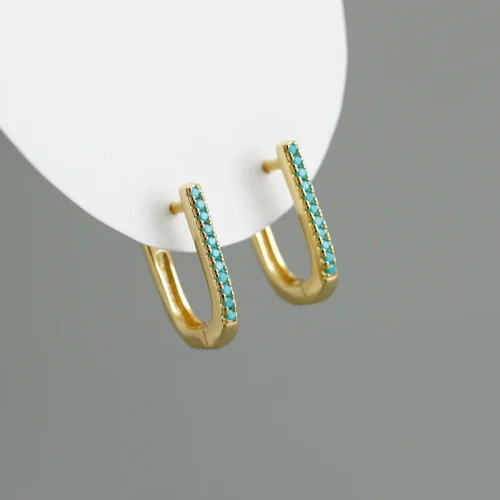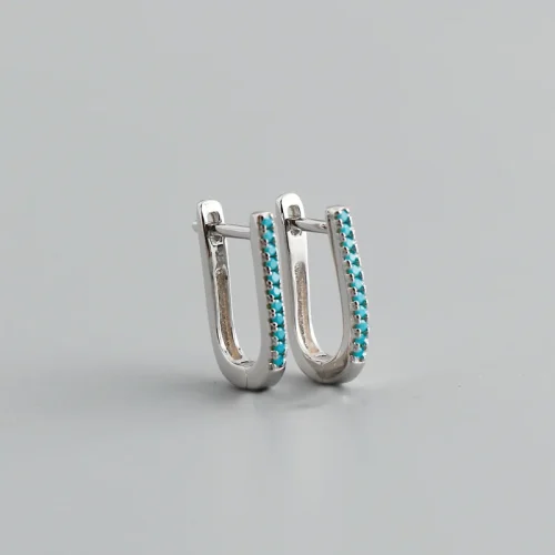Women Jewelry S925 Sterling Silver Hoop Earrings U Shape Light Luxury Charm Fashion Blue Turquoise Earring