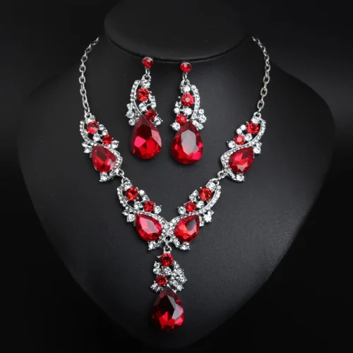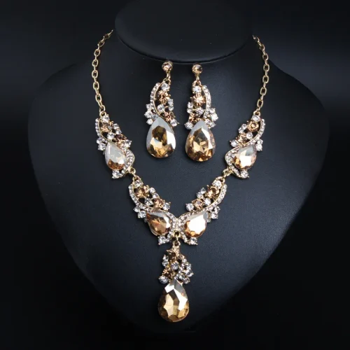 Women Ladies Wedding Crystal Jewelry Party Necklace Earring Sets Mother Gift