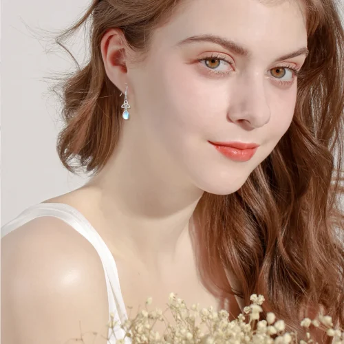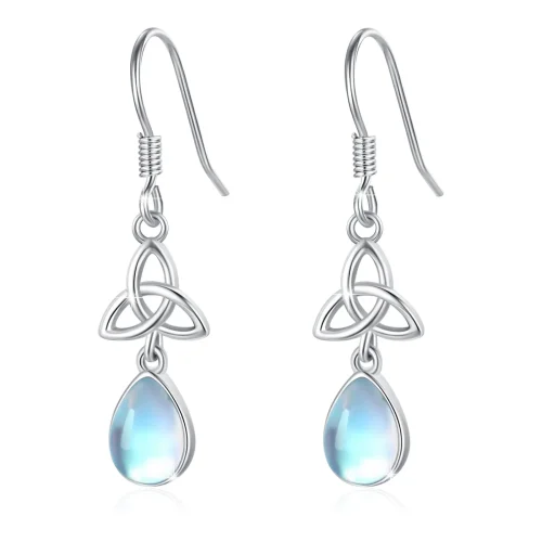 Women Jewelry S925 Sterling Silver Rhodium Plated Celtic Knot Moonstone Pendant Hook Earrings