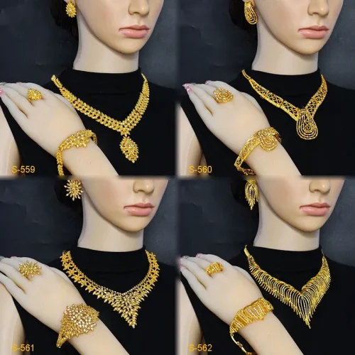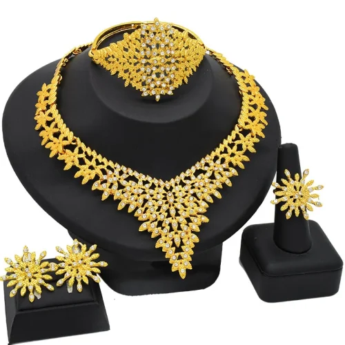 Women Jewelry Sets Gold Jewelry Set Bride Necklace Bracelet Earrings Ring Four-piece Set