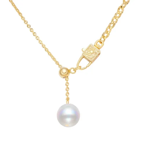 Women Jewelry Jewellery 925 Sterling Silver 18k Gold Plated Drawable Adjustment Lock Clasp Freshwater Pearl Necklace for Lady