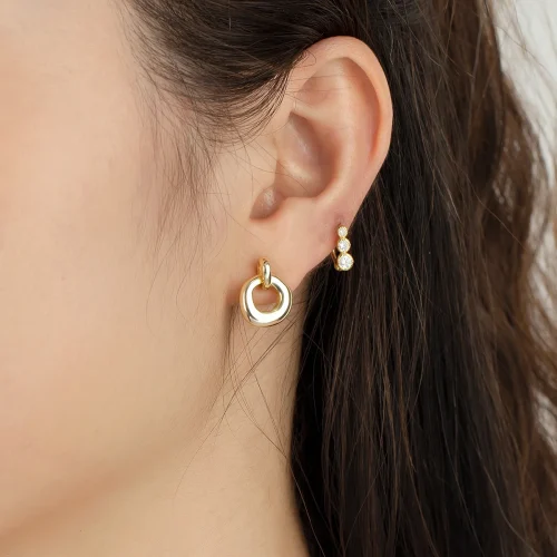 Women Jewelry Real Gold Plated Vermeil Sculpted Small Knot Link Hoop Drop Earrings in 925 Sterling Silver