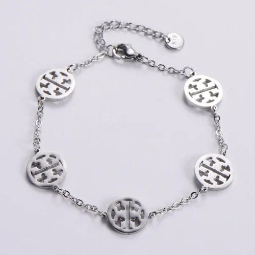 Women Round Hollow Stainless Charm Bracelet Simple Bracelet Trendy Joker Link Bracelet Jewelry