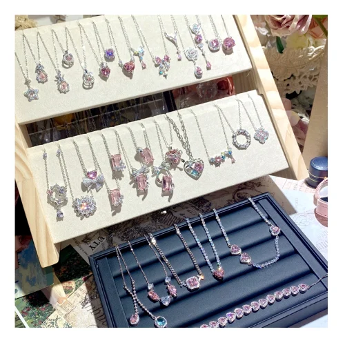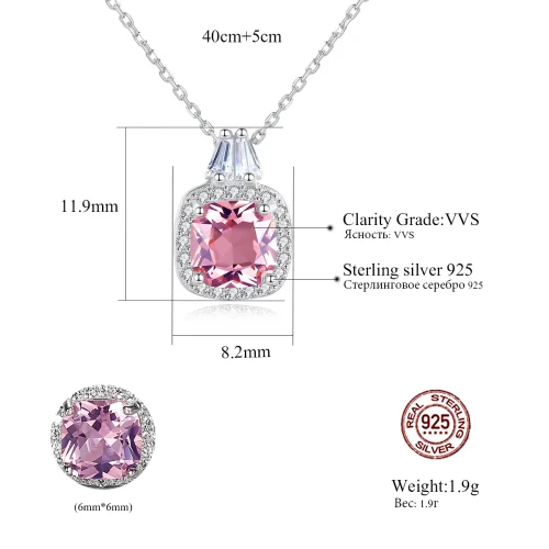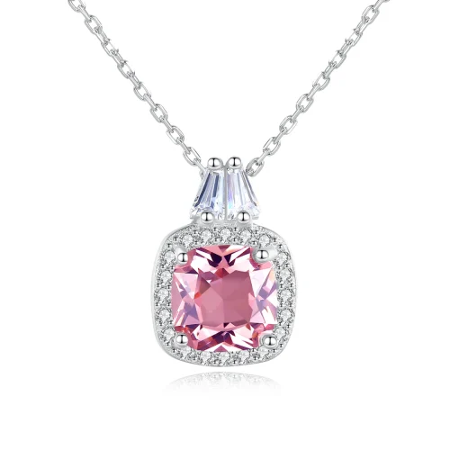 Women Pink Genuine 925 Sterling Silver Pendant Necklace Jewelry Radiant Cut Stone Silver Fine Jewelry Anniversary Gifts