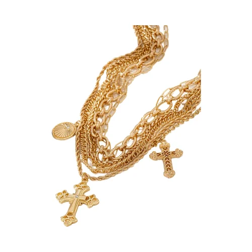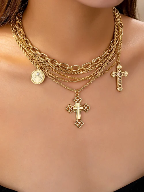 Women’s Chunky Layered Chain Necklace with Cross Pendant Key Shape Jewelry Featuring Link Chain