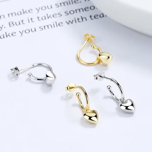Women’s 925 Sterling Silver Minimalist High-End Vintage Jewelry Heart-Shape Dangle Earrings Fine Stud Drop Earring for Gift