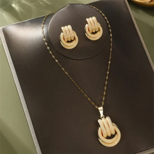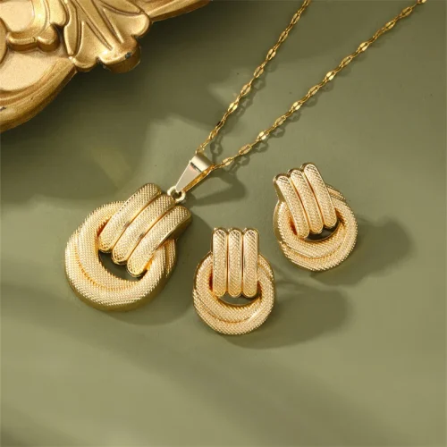 Women’s Classic Fashion Jewelry Set Gold Plated Alloy Chain Necklace & Earrings Parties Engagements Anniversaries Gifts