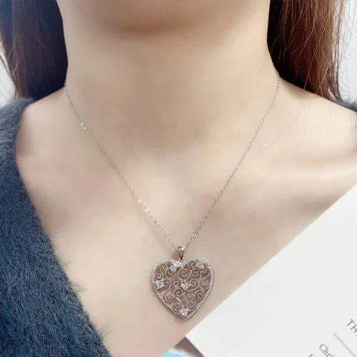 Women’s Birth Flower Necklace 925 Sterling Silver Love Heart Pendant Gemstones Jewelry