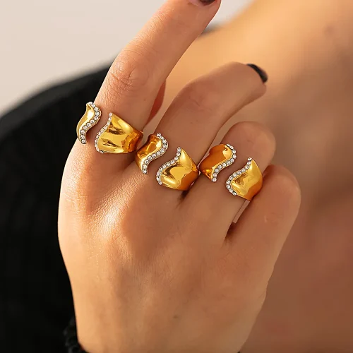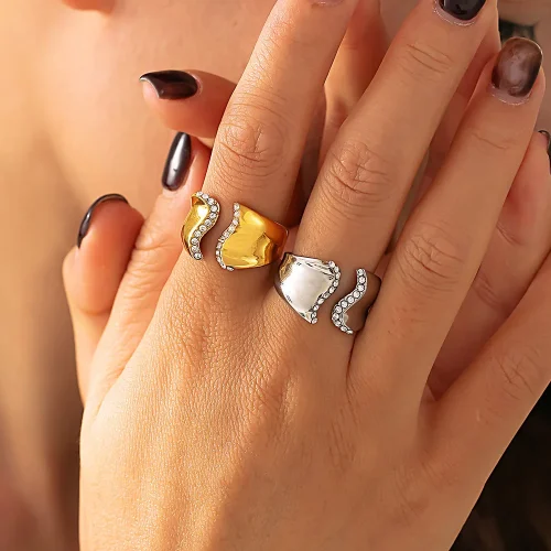 Women’s Adjustable Open Ring 18K Plated Stainless Steel Trendy Wedding Jewelry with Casual Style for Parties and Gifts