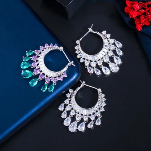 XILIANGFEIZI New European and American Shiny Circular Water Drop Zircon Tassel Women’s Earrings,Fashion fairy Earrings