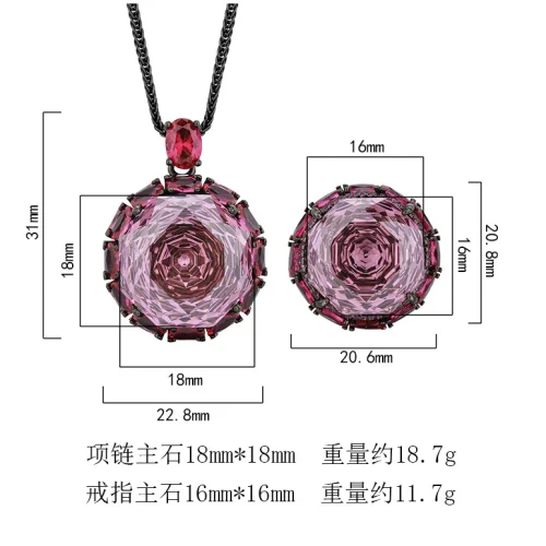 XILIANGFEIZI High Quality Jewelry New Style Jewelry Copper Gold-plated Rose-cut Round Luxury Necklace Ring Set for Women 18-16m