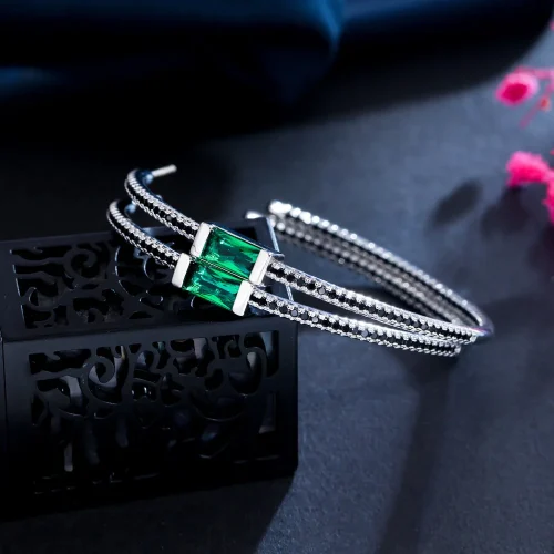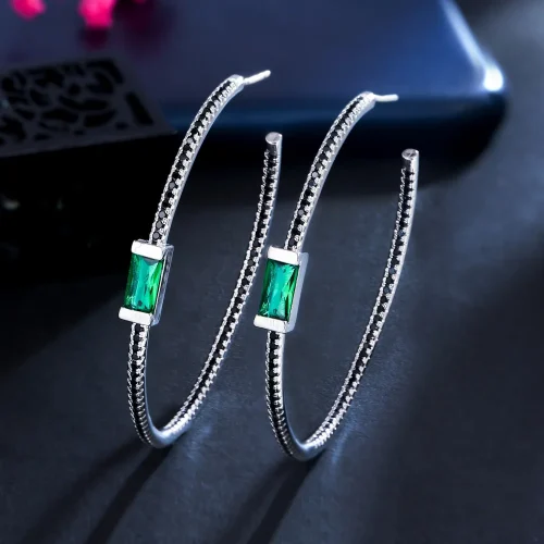 XILIANGFEIZI S925 Silver Needle Emerald Copper Zircon Large Ring Earrings,Style As the Instagram Blogger,are Trendy