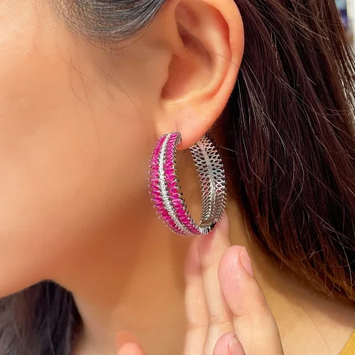 XILIANGFEIZI Vintage Ruby Circle Ear Rings Ins-style European American Heavy Industry Light Luxury Slightly Set Zircon for Women