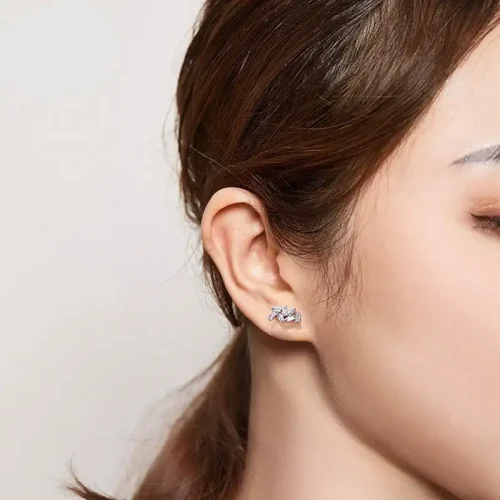 14K White Gold Baguette-Cut Natural Diamond Stud Earrings Fashion Jewelry