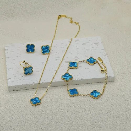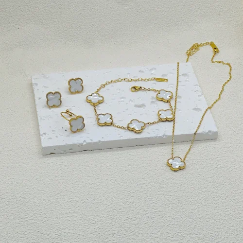 15MM Four-leaf Clover Bracelet/earrings/necklace 3 Pieces/set Stylish Women’s Stainless Steel 18k Gold Earrings Ring Headpiece
