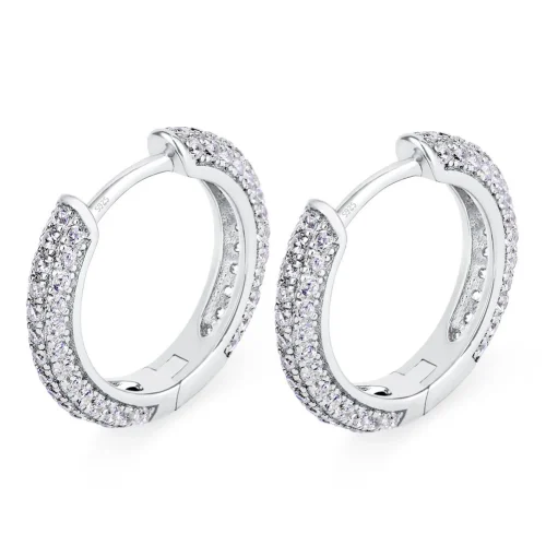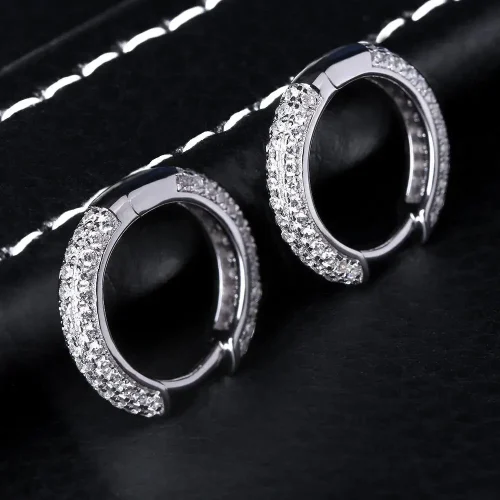 15mm Iced Out Huggie Earring 14K White Gold Plated 925 Sterling Silver AAAAA Cubic Zirconia CZ Round Hoop Earrings for Women Men