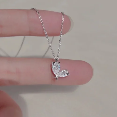 14K Gold Women Gift Jewelry Cubic Zirconia 925 Sterling Silver Heart Charm Love Necklace