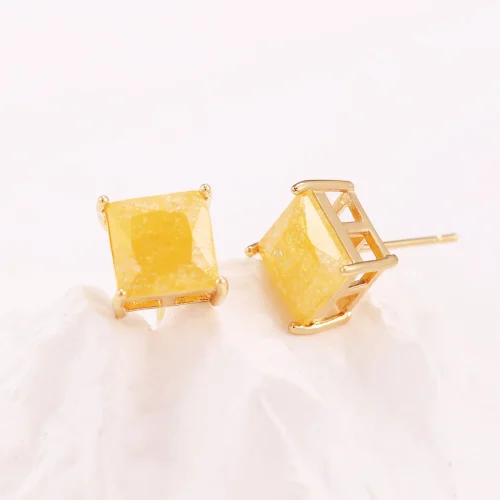 14K Solid Yellow Gold Handmade Earrings Natural Square Tiger Eye Gemstone Studs Fine Women’s Jewelry Weddings Birthdays Gift