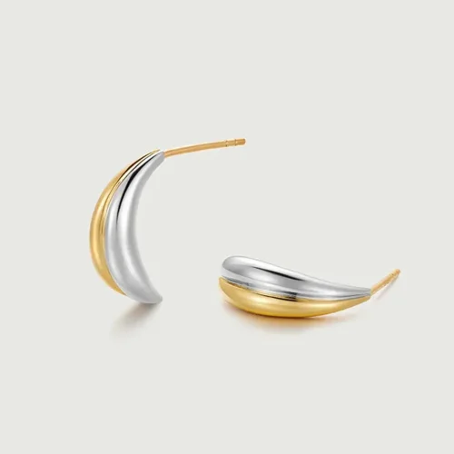 14k Gold Two Toned Wave Stud Earrings Unique Earrings Fashionable Fine Stud Fashion Minimalist Earrings for Women