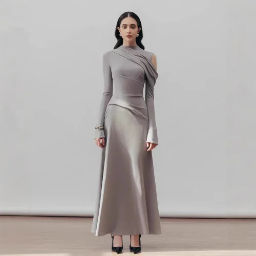 Women’s Boutique’s New High-quality Ramadan Elegant Party Dresses with Irregular Collar and Long Sleeves