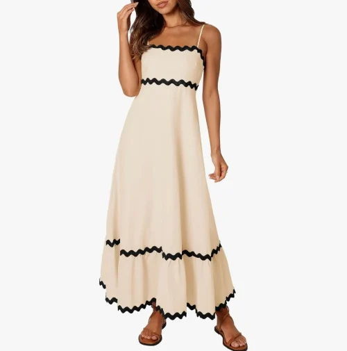 Women’s 2025 Summer A-Line Midi Dress Sleeveless Backless Sundress Spaghetti Straps Flowy Smocked Lace Swing Breathable Natural