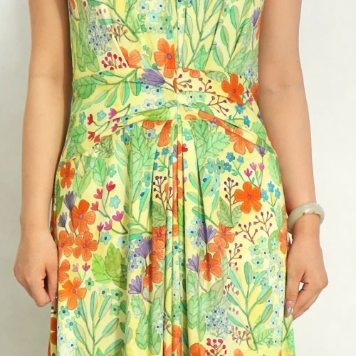 Women’s Bamboo Fiber Floral Midi V-neck Dress Eco Friendly Bamboo Fiber Casual Summer Dresses