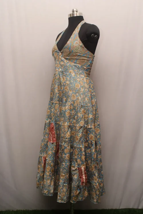 Women’s Backless Beach Dress Boho Maxi V Neck Dress Summer Sundress Vintage Sari Silk Dress (Assorted Colours)