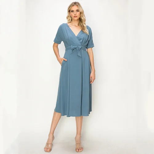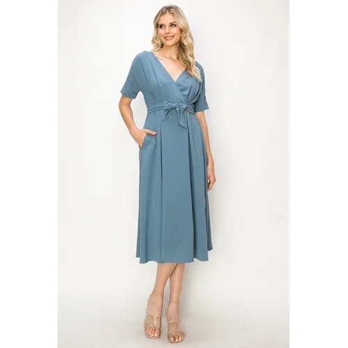 Women’s Anti-Wrinkle V Neck Midi Dress izable Polyester Woven Light for Autumn/Summer Daily Wear