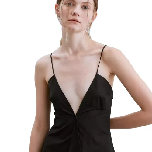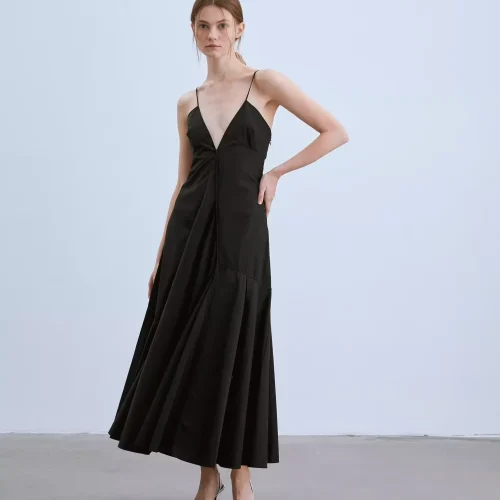 Women’s Casual Long Dress for Spring and Summer Solid Color Backless Sleeveless with Thin Shoulder Strap
