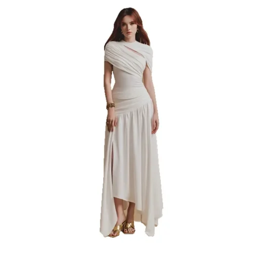 Women’s Elegant High-End Temptation Y2K Pure Desire Dress Pleated Waist Top Irregular Skirt Casual Vacation Two-Piece Set Summer
