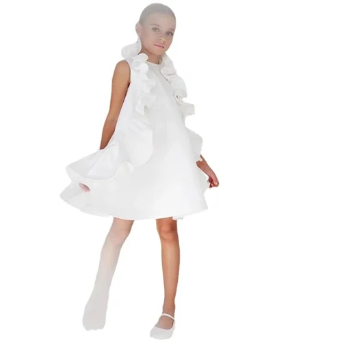 Yalindars White Solid Color Cotton Party DressesGiant Pleated Decoration Trendy and Atmospheric Dress