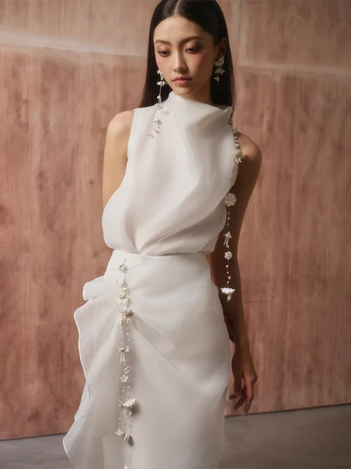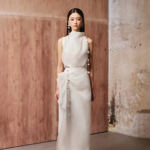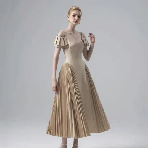 2025 New Fashion Luxury Vietnamese Style High Quality Dress Slim Long Plain Solid Color Short Sleeve Women’s Long Dress
